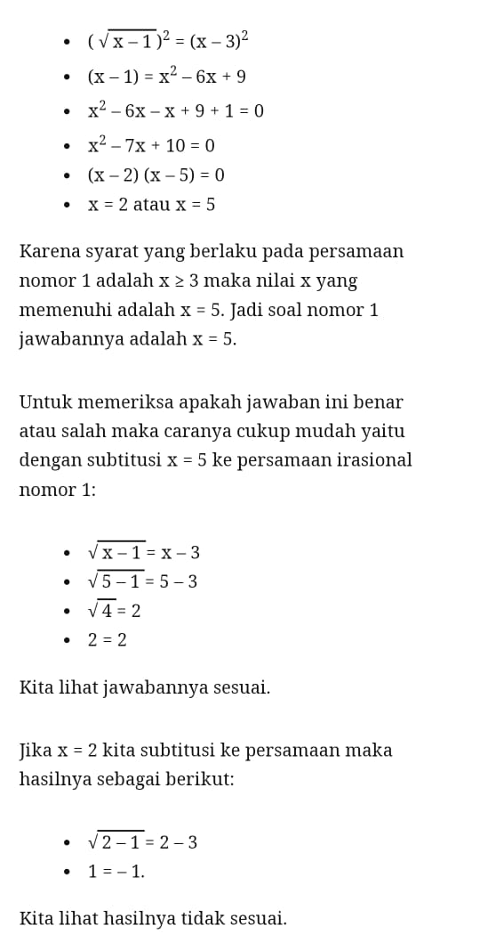 judul postingan : SOAL PERSAMAAN DAN PERTIDAKSAMAAN RASIONAL DAN IRASIONAL